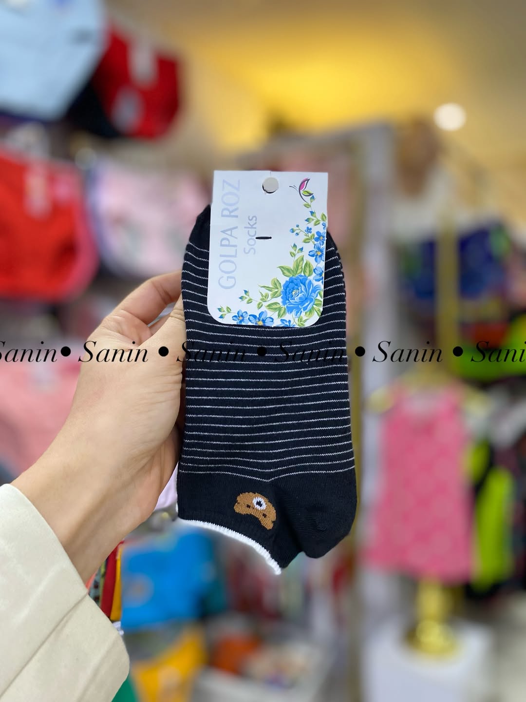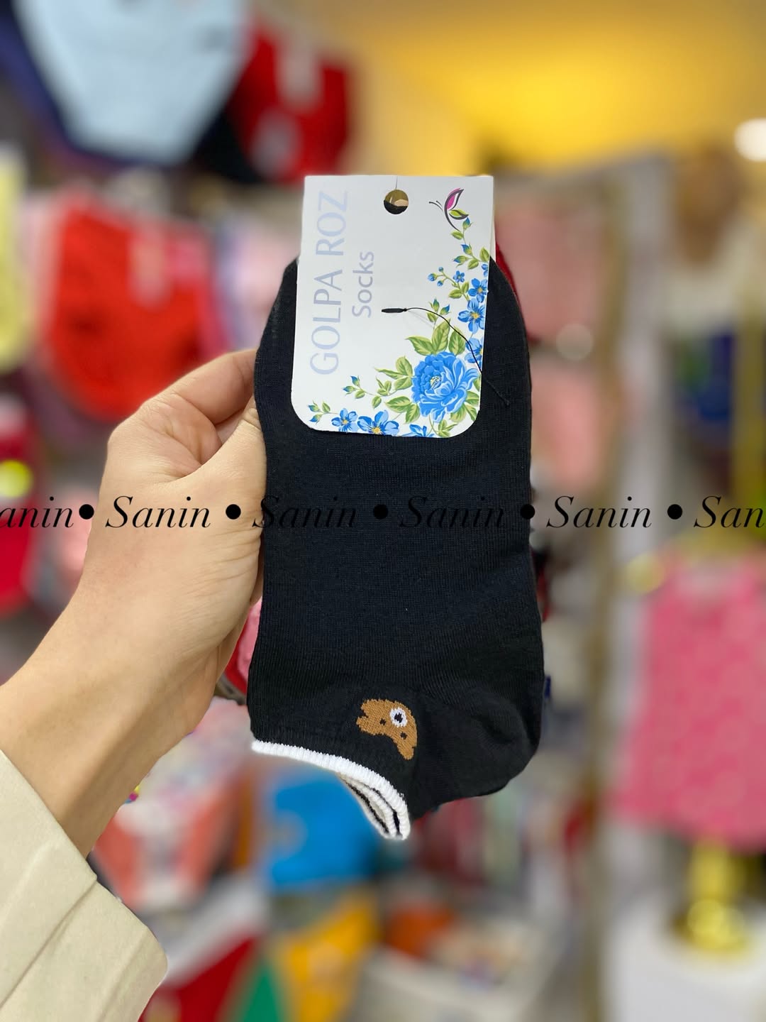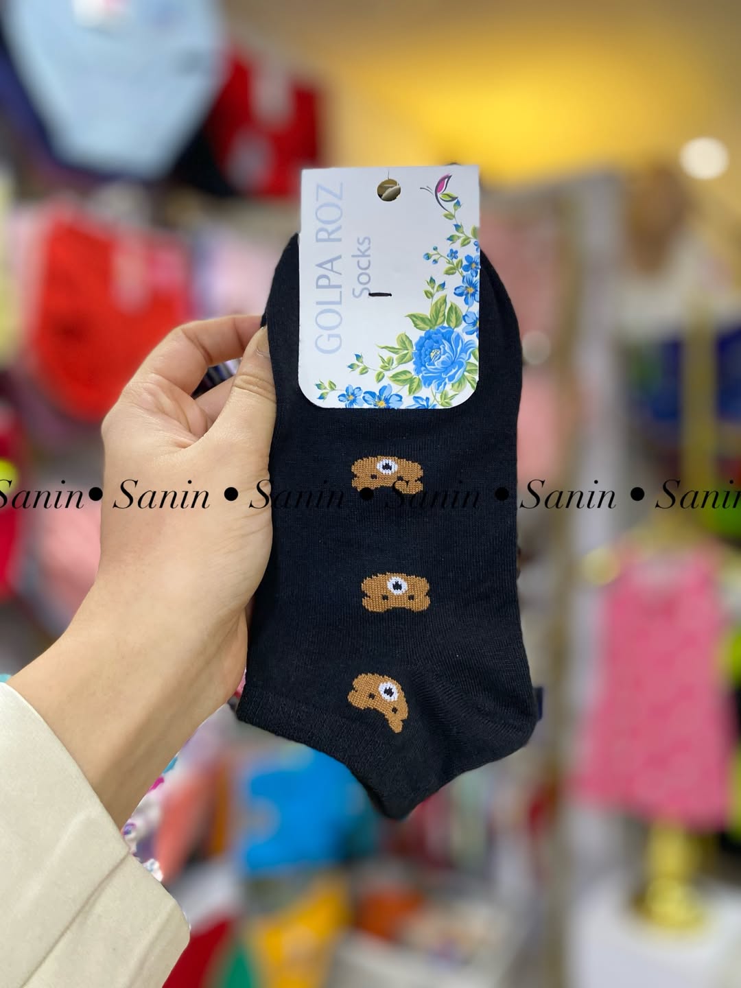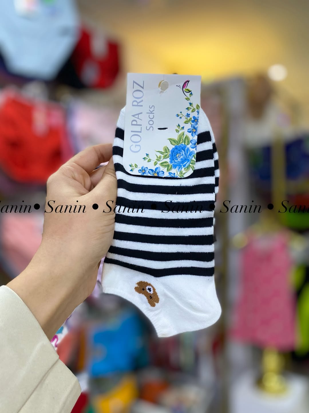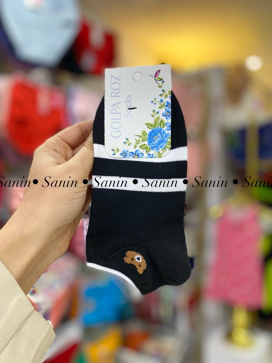 جوراب مچی نخی اعلا با تم سفید مشکی خرسی مطابق تصویر. کشسانی نرم و لطیف