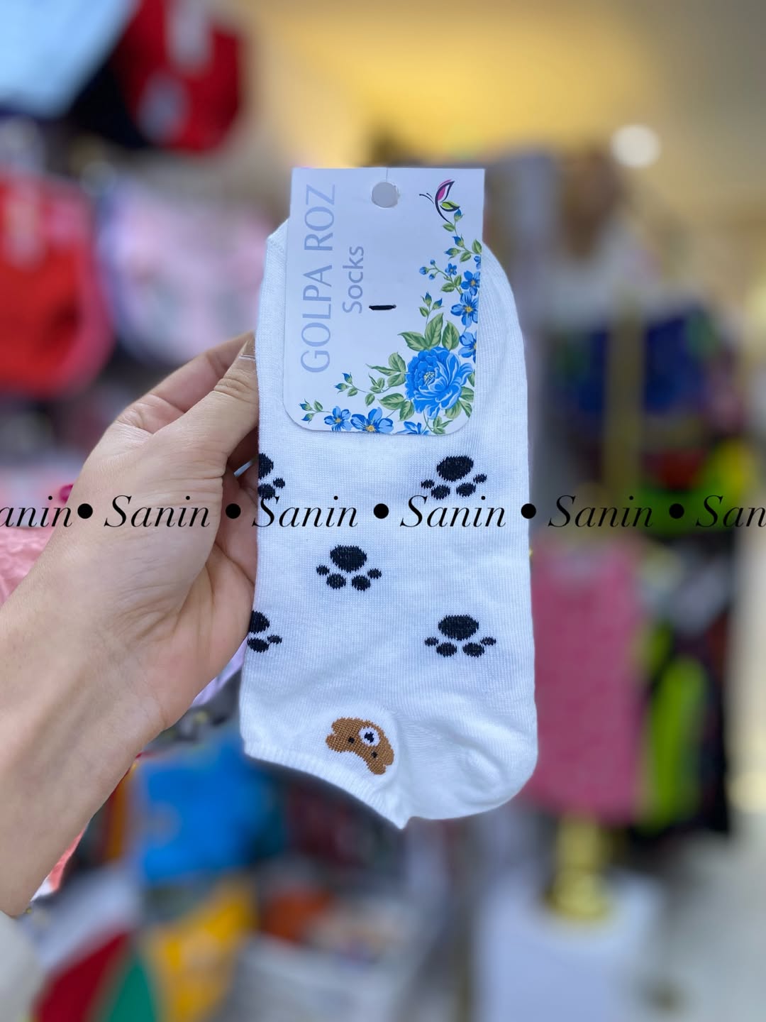 جوراب مچی نخی اعلا تم سفید مشکی خرسی